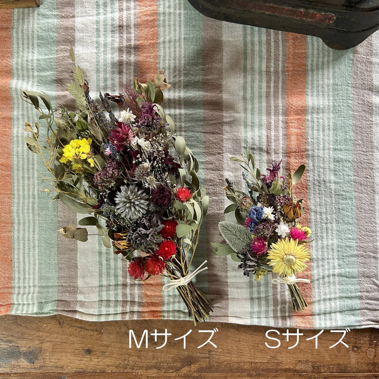 自然素材の為、大きさや色合い・素材の組み合わせが1点毎に全て違います。お届け時期により収穫処理した花が変動しますので、商品画像はあくまでもイメージとしてご理解の上、ご注文をお願いします。