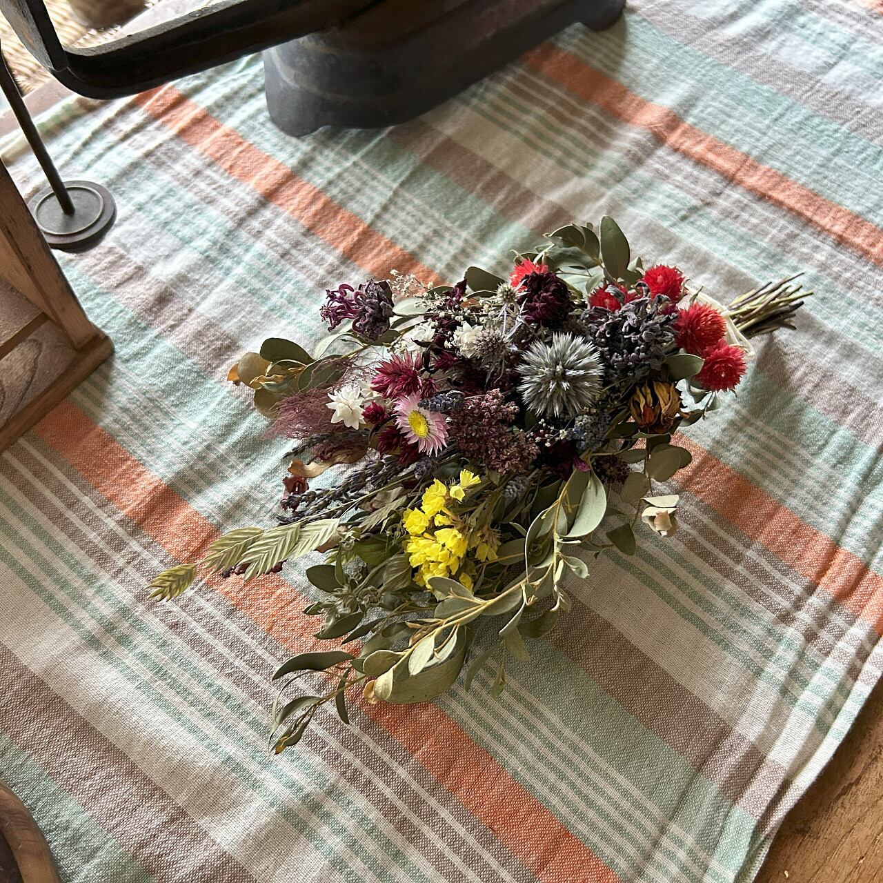 自家農園・契約農家にて栽培した草花をドライフラワーにしたオリジナル商品です。収穫後に洗浄、天日乾燥をした上で乾燥室にてドライ処理を行っています。ナチュラルな風合いをお楽しみ下さい。