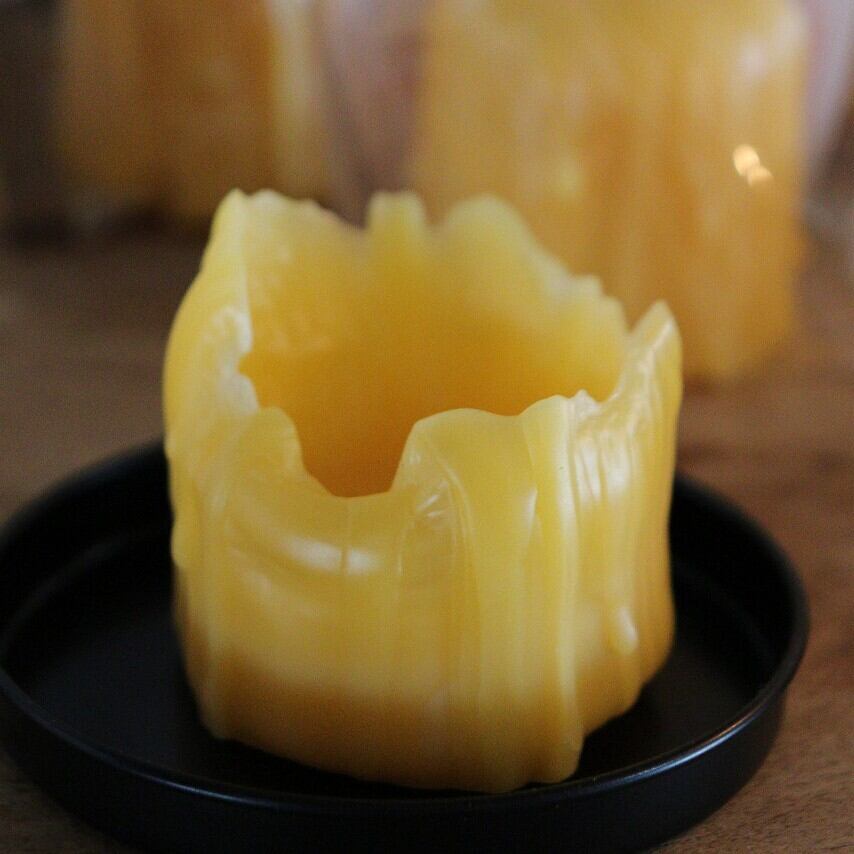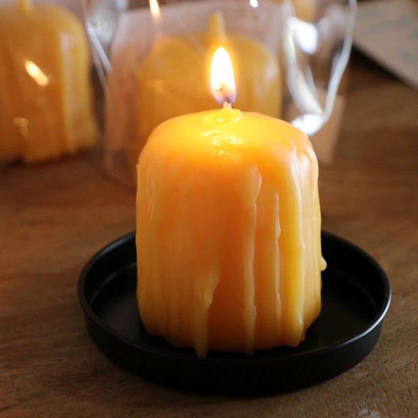 全て手作業で芯糸に蜜蝋をかけ流ししながら形を成形していますので、形状や風合いは個体毎に違います。