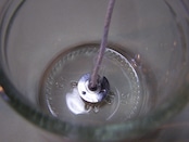 ストップ管の役目はガラス容器底部の加熱を軽減、芯の転倒防止、芯の周辺にワックス以外の素材がある場合は引火しないようにします。主にジェルキャンドル用で使用されます。芯糸が燃焼してガラス管の所まで来ると炎が鎮火します。