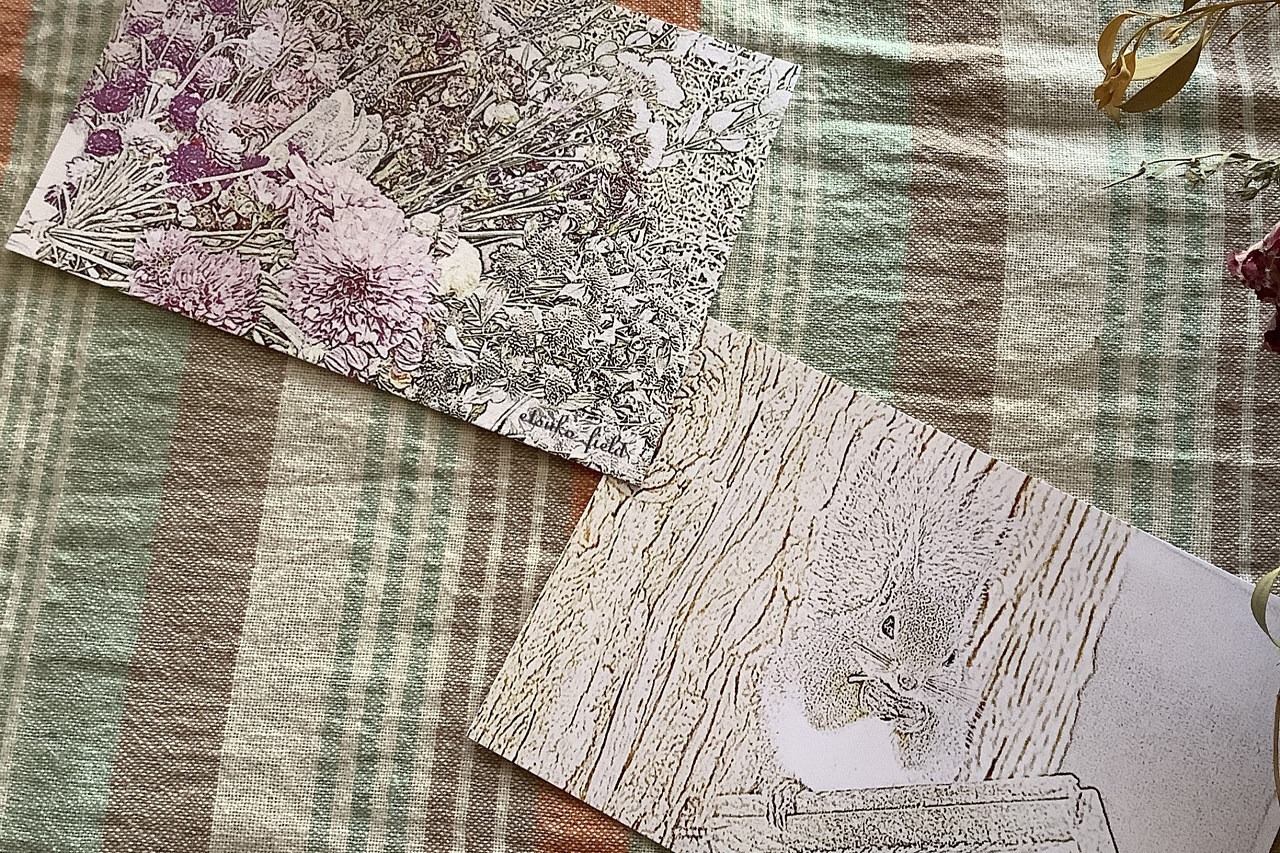 当店オリジナル制作のポストカードです。ナチュラルな描写と優しい雰囲気の作品を各種販売しています。